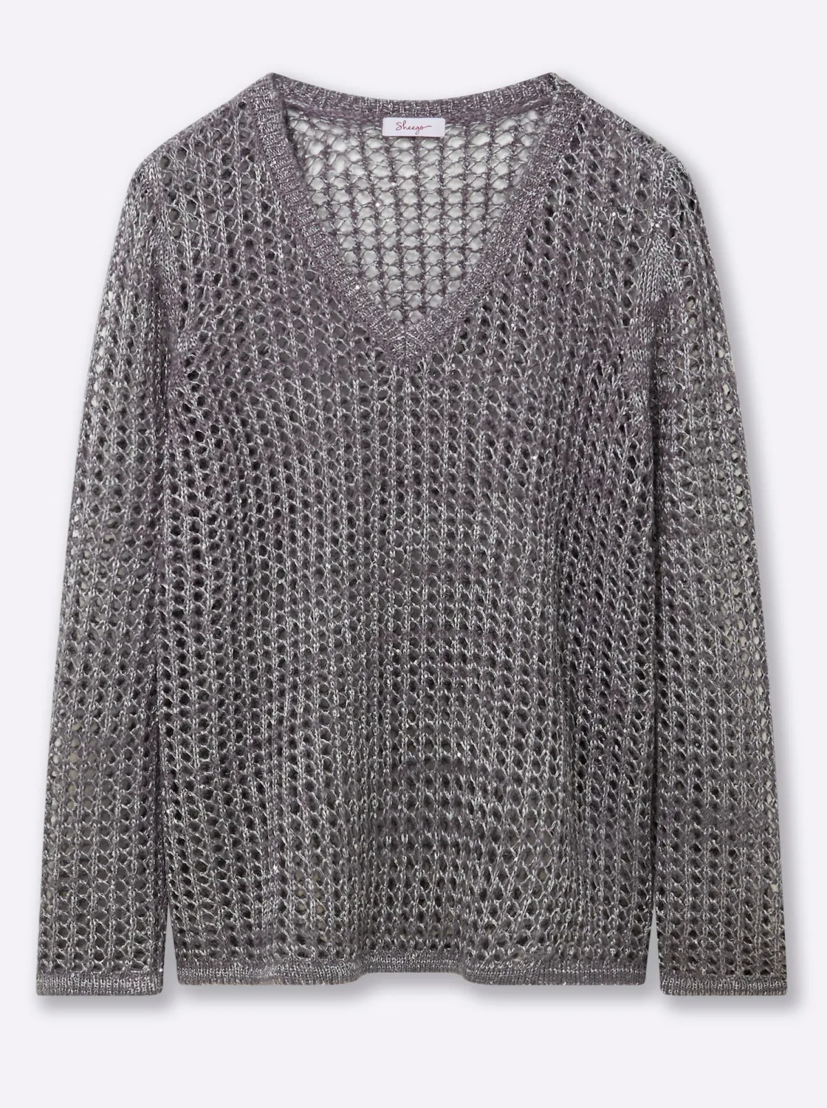 Design: Geribbeld gebreid; Type sluiting: Slip; Halstype: V-hals; Motief: Effen; Extra's: Glitterend, Op staal naden; Pasvorm: Normale pasvorm; Armlengte: Lange mouw; Lengte: Normale lengte