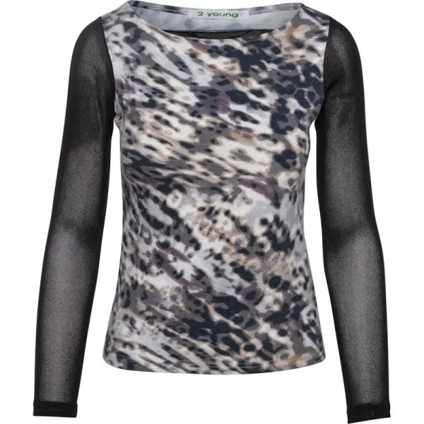 Dierenprints, voor degenen die het weten, zijn dit seizoen de rigueur en 2-Young zorgt ervoor dat je altijd op de trend zit. Dit topje met print is verwoestend eenvoudig en heeft een sensueel transparante rug en mouwen in een effen kleur. Boothals. Lange mouwen