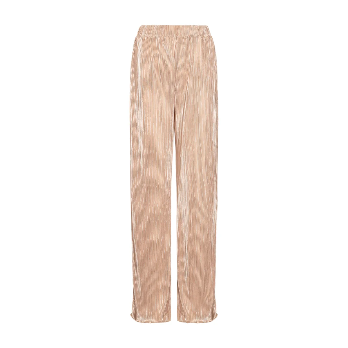 Deze elegante geplooide broek heeft een relaxt, wijd silhouet dat prachtig valt bij elke beweging. De broek is voorzien van een elastische tailleband voor comfort en veelzijdigheid en biedt een verfijnde maar moeiteloze look – perfect voor zowel casual dagen als avondgelegenheden.