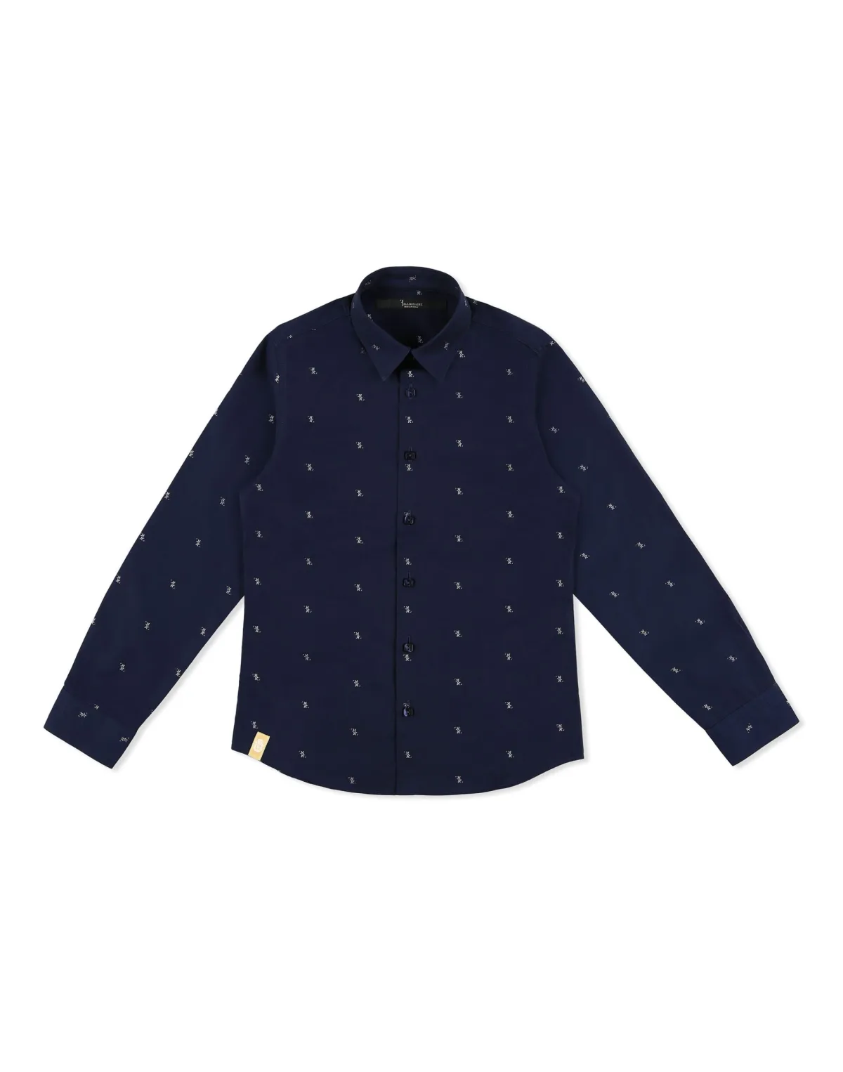 The brand's monogram is jacquarded all-over this cotton poplin shirt. Pointed collar and mother-of-pearl buttoning. Two pleats on the back.