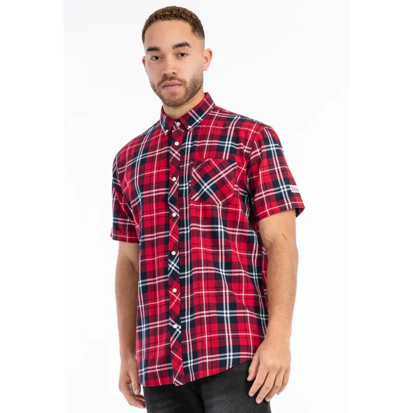 - Korte mouwen geruit shirt met doorlopende knoopsluiting, knoopkraag en een opgestikte borstzak. Er zitten kleine logo- borduurtjes op de zak en de kraag.- Kwaliteit: 100 % gekamd katoen / 60 % gekamd katoen, 40 % polyester- Stof: popeline