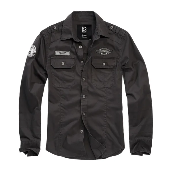 klassieke rechte snit / schouderstukken / 2 borstzakken met knopen / knoopsluiting / Brandit metalen label / 3 geborduurde patches