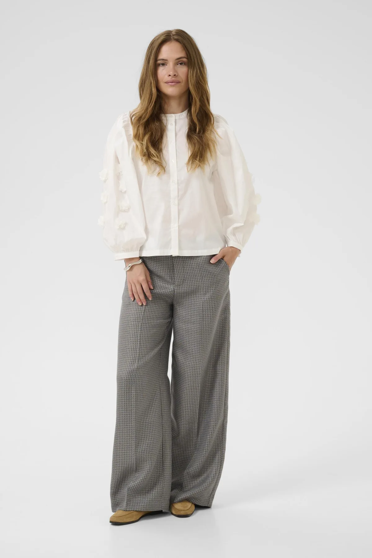 Deze damesblouse heeft een losse pasvorm, lange mouwen met 3D-details en een ronde hals. Comfortabel ontwerp, geschikt voor werk en dagelijks gebruik. Fijne was 30°, niet bleken, niet in de droger drogen, Liggend laten drogen., koud strijken max. 110° C, 65% Katoen,33% Polyester,2% Elastaan