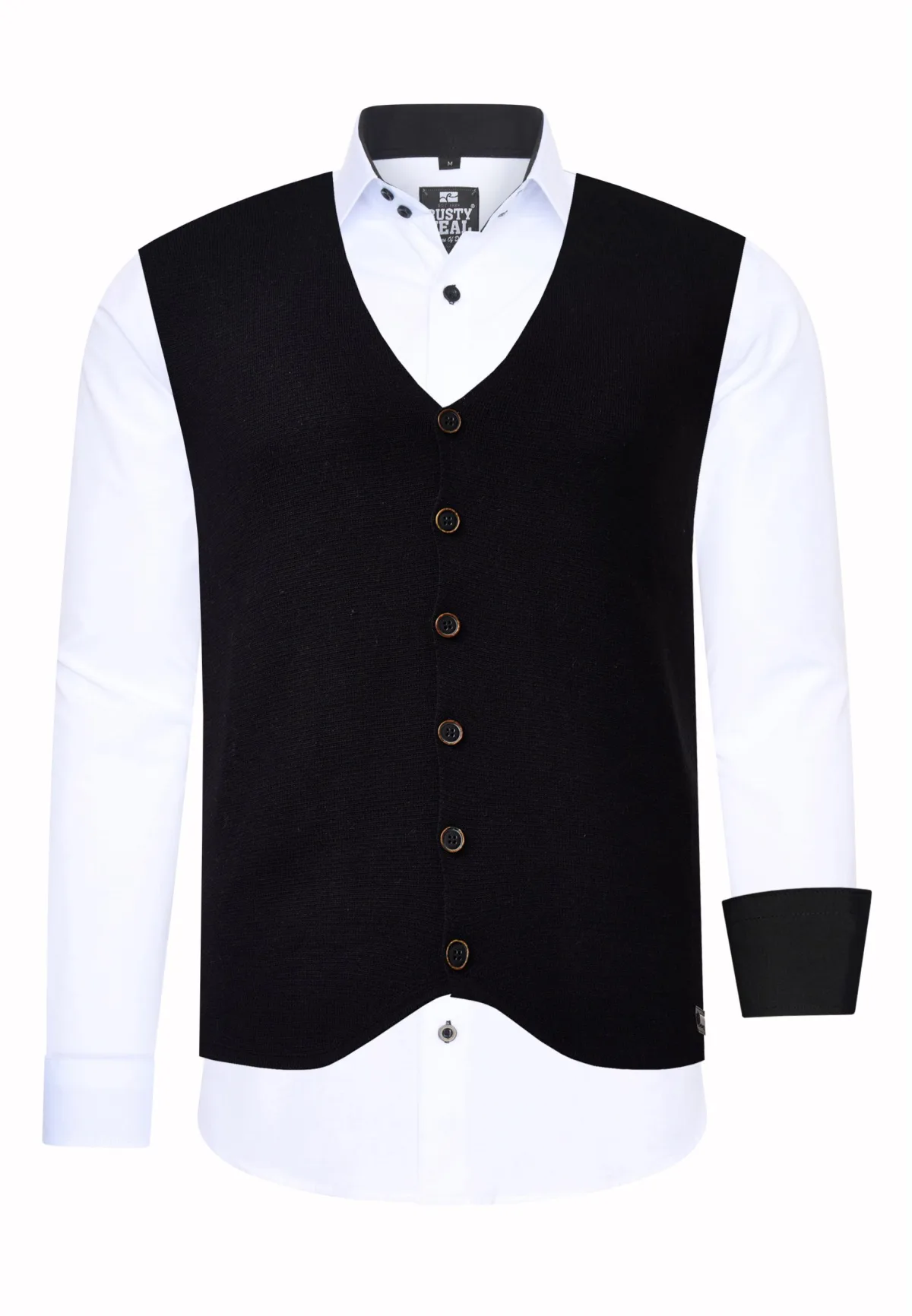 Rusty Neal heren overhemd/vest set Pasvorm: Slim Fit Materiaal shirt: 60% katoen, 37% polyester, 3% elastaan Materiaal vest: 70% polyacryl, 30% katoen Gewicht: 750 g Land van herkomst: Turkije Kraagvorm: Kent kraag TEVREDENHEIDSGARANTIE: U kunt bij ons zonder risico kopen, wij accepteren retourzendingen zonder opgaaf van reden en storten uw geld binnen de kortst mogelijke termijn terug. Onze bedrijfsfilosofie is nog steeds: "De klant is koning". Ons doel is om te allen tijde de best mogelijke service te bieden, met het hoofdkantoor in Duitsland. PRODUCTIE: Als oprichter en fabrikant ontwerpen en produceren wij onze producten autonoom van A tot Z als familiebedrijf. Hierdoor kunnen wij kwaliteit en een optimale prijs-kwaliteitverhouding garanderen. Gefabriceerd onder eerlijke arbeidsomstandigheden met hoogwaardige materialen die zorgvuldig zijn verwerkt (geen chemische geur). Tijdloos design uit het land van herkomst: Turkije PASVORM: Dit shirt is gemaakt van een hoogwaardige en soepele katoenmix en staat garant voor een absoluut comfortabel gevoel met een feelgoodfactor. Ons model is 1,85 m lang, weegt ruim 80 kg en draagt maat M (medium). Aangepast aan de Europese markt, bieden wij dit shirt aan in de volgende pasvorm: Slim Fit GELEGENHEID: Of het nu lente/zomer of herfst/winter is, dit shirt is altijd comfortabel om te dragen en is een allrounder. Dankzij de hoogwaardige materialen en afwerking kriebelt het niet. Het tijdloze en toch moderne design garandeert een stijlvolle verschijning, zowel op kantoor of tijdens zakelijke bijeenkomsten als casual in de middag of als een geweldig accent op feesten of andere evenementen. MACHINEWASBAAR: Dankzij de hoogwaardige verwerking van de materialen is er geen sprake van kleurverlies na het wassen en is krimpen van het shirt geen probleem meer! Kwaliteit die de tand des tijds doorstaat, zelfs na talloze wasbeurten!