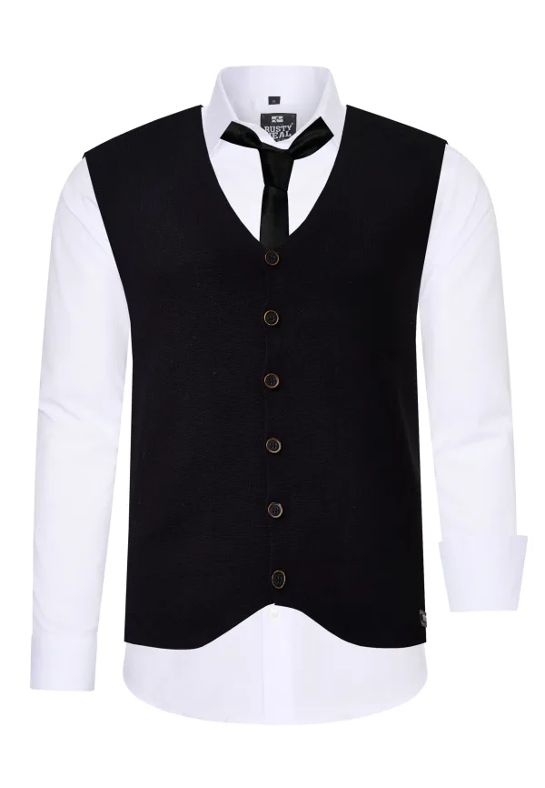 Rusty Neal heren overhemd/vest/stropdas set Pasvorm: Slim Fit Materiaal shirt: 60% katoen, 37% polyester, 3% elastaan Materiaal vest: 70% polyacryl, 30% katoen Stropdasmateriaal: 100% polyester Gewicht: 800 g Land van herkomst: Turkije Kraagvorm: Kent kraag TEVREDENHEIDSGARANTIE: U kunt bij ons zonder risico kopen, wij accepteren retourzendingen zonder opgaaf van reden en storten uw geld binnen de kortst mogelijke termijn terug. Onze bedrijfsfilosofie is nog steeds: "De klant is koning". Ons doel is om te allen tijde de best mogelijke service te bieden, met het hoofdkantoor in Duitsland. PRODUCTIE: Als oprichter en fabrikant ontwerpen en produceren wij onze producten autonoom van A tot Z als familiebedrijf. Hierdoor kunnen wij kwaliteit en een optimale prijs-kwaliteitverhouding garanderen. Gefabriceerd onder eerlijke arbeidsomstandigheden met hoogwaardige materialen die zorgvuldig zijn verwerkt (geen chemische geur). Tijdloos design uit het land van herkomst: Turkije PASVORM: Dit shirt is gemaakt van een hoogwaardige en soepele katoenmix en staat garant voor een absoluut comfortabel gevoel met een feelgoodfactor. Ons model is 1,85 m lang, weegt ruim 80 kg en draagt maat M (medium). Aangepast aan de Europese markt, bieden wij dit shirt aan in de volgende pasvorm: Slim Fit GELEGENHEID: Of het nu lente/zomer of herfst/winter is, dit shirt is altijd comfortabel om te dragen en is een allrounder. Dankzij de hoogwaardige materialen en afwerking kriebelt het niet. Het tijdloze en toch moderne design garandeert een stijlvolle verschijning, zowel op kantoor of tijdens zakelijke bijeenkomsten als casual in de middag of als een geweldig accent op feesten of andere evenementen. MACHINEWASBAAR: Dankzij de hoogwaardige verwerking van de materialen is er geen sprake van kleurverlies na het wassen en is krimpen van het shirt geen probleem meer! Kwaliteit die de tand des tijds doorstaat, zelfs na talloze wasbeurten!