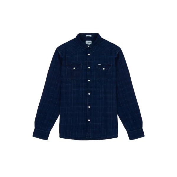Het resultaat van 75 jaar kwaliteitsvakmanschap, het Western regular fit overhemd van Wrangler is een nietje in elke garderobe. Ons klassieke Western overhemd met lange mouwen is voor de zomer herzien in een indigo-ruitjespatroon, met authentieke afwerkingen zoals een western juk, puntige kraag en drukknoopsluiting. Gemaakt van 100% Better Cotton Initiative (BCI) goedgekeurde katoen, 's werelds grootste duurzame katoenprogramma.Twee klepzakken.Label Wrangler op borstzak.