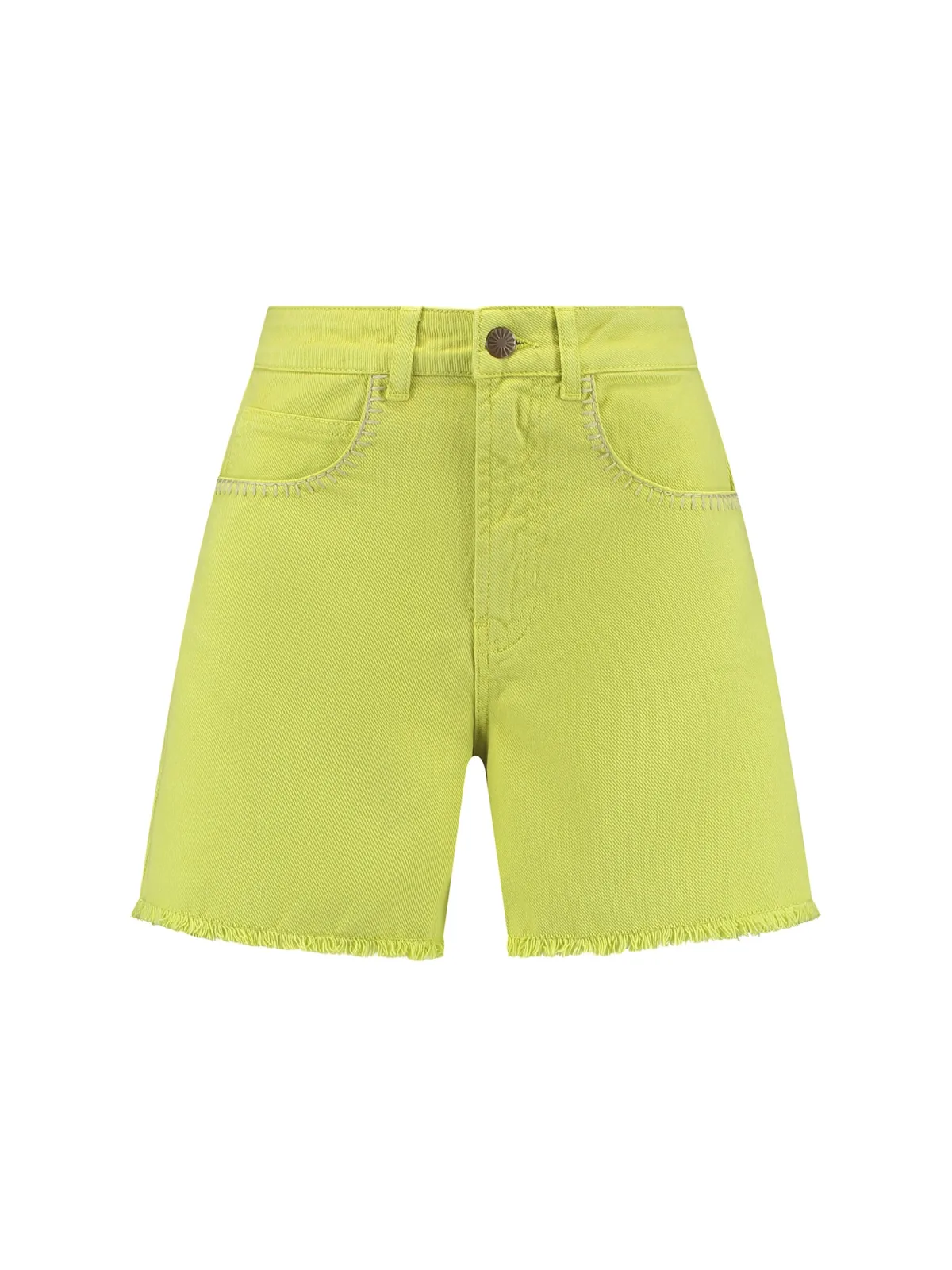 Design: Ritssluiting, 5-pocket-style; Type sluiting: Ritssluiting; Materiaal: Denim; Motief: Effen; Details: Franjes; Extra's: Riemlussen; Wassing: Colored denim; Lengte: Kort/mini; Pasvorm: Regular; Taillehoogte: High waist
