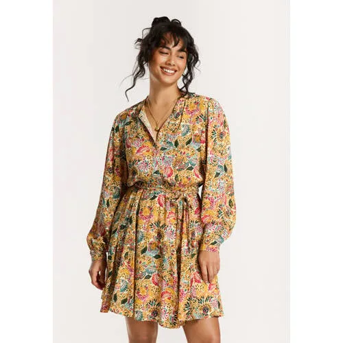 Design: Pofmouwen, Met riem; Type sluiting: Elastische band; Materiaal: Viscose; Halstype: Opstaande kraag; Motief: Paisley; Details: Gedrapeerd; Extra's: All-over patroon; Lengte: Kort/mini; Snit: Recht; Pasvorm: Normale pasvorm; Armlengte: Lange mouw