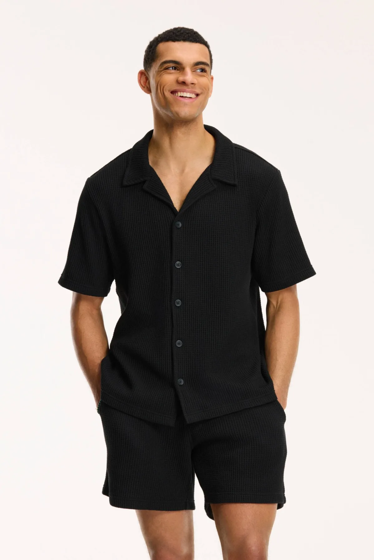 Shiwi loose fit overhemd Deam met wafelstructuur zwart