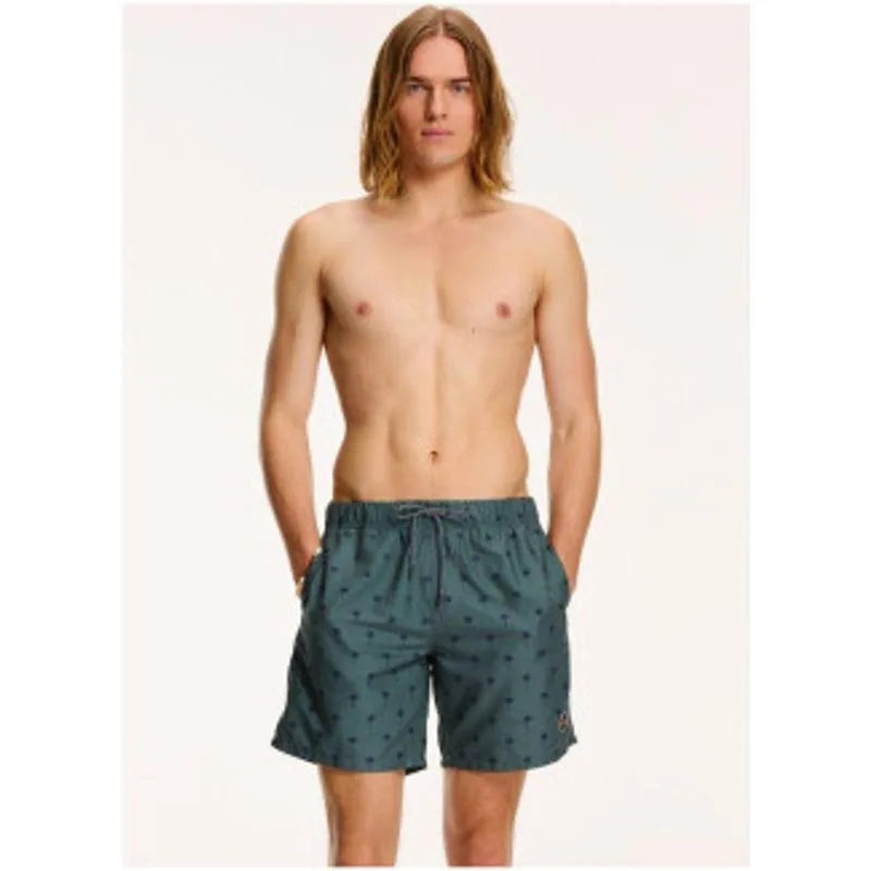 Deze groene MIKE zwemshort Shiwi Scratch Palm heeft een normale pasvorm en is gemaakt van gerecycled polyester. De elastische tailleband met verstelbare striksluiting zorgt voor een perfecte pasvorm. De zwemshort is duurzaam en heeft steekzakken aan de zijkant en een achterzak. - Normale pasvorm - Elastische tailleband met verstelbare striksluiting - Lengte (18 cm) - Steekzakken aan de zijkant en achterzak