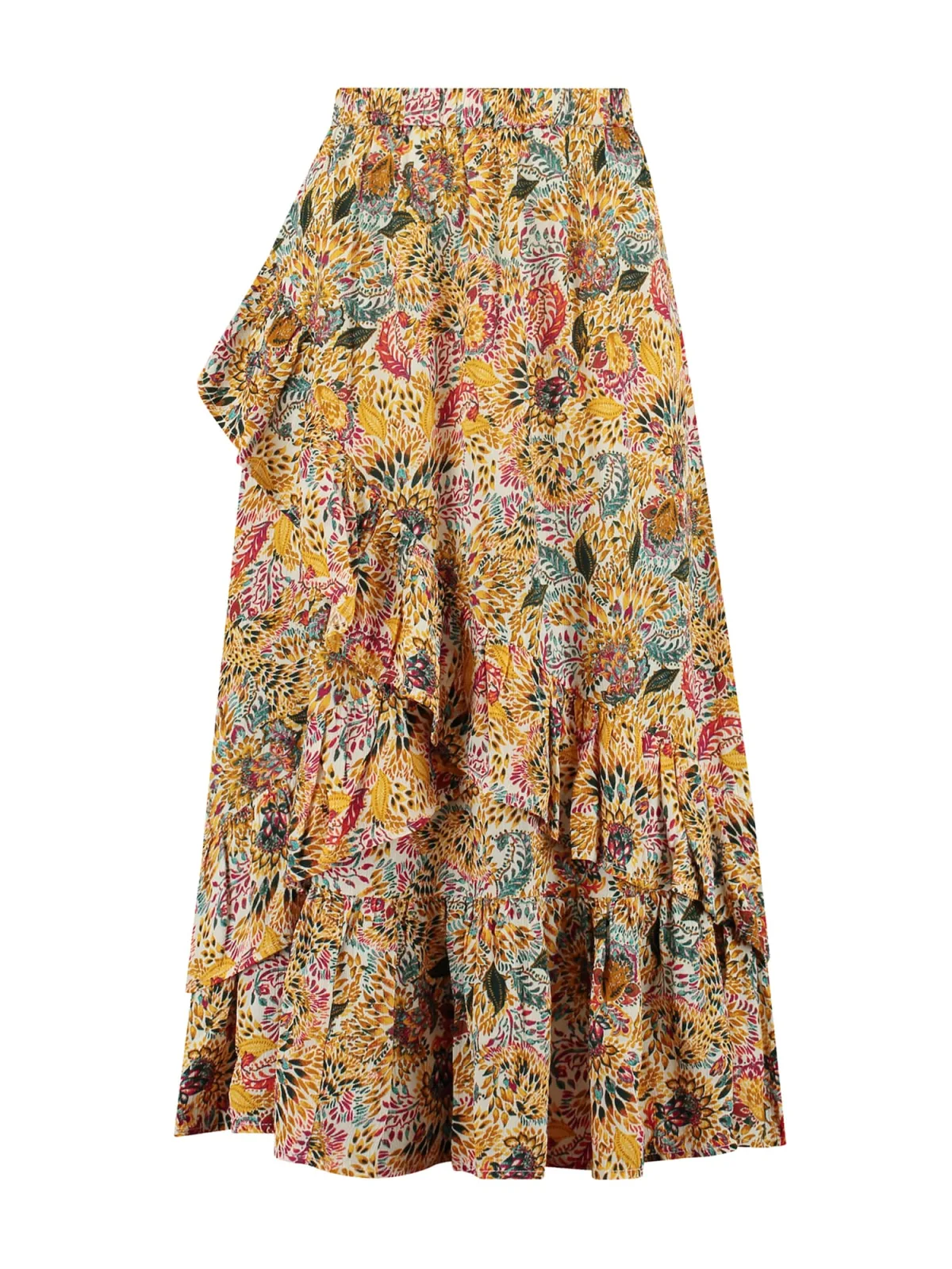 Design: Elastische taille/zoom; Materiaal: Viscose; Motief: Paisley; Rokvorm: A-lijn rok; Details: Volant, Gedrapeerd; Extra’s: All-over patroon; Lengte: 7/8 lengte; Pasvorm: Normale pasvorm