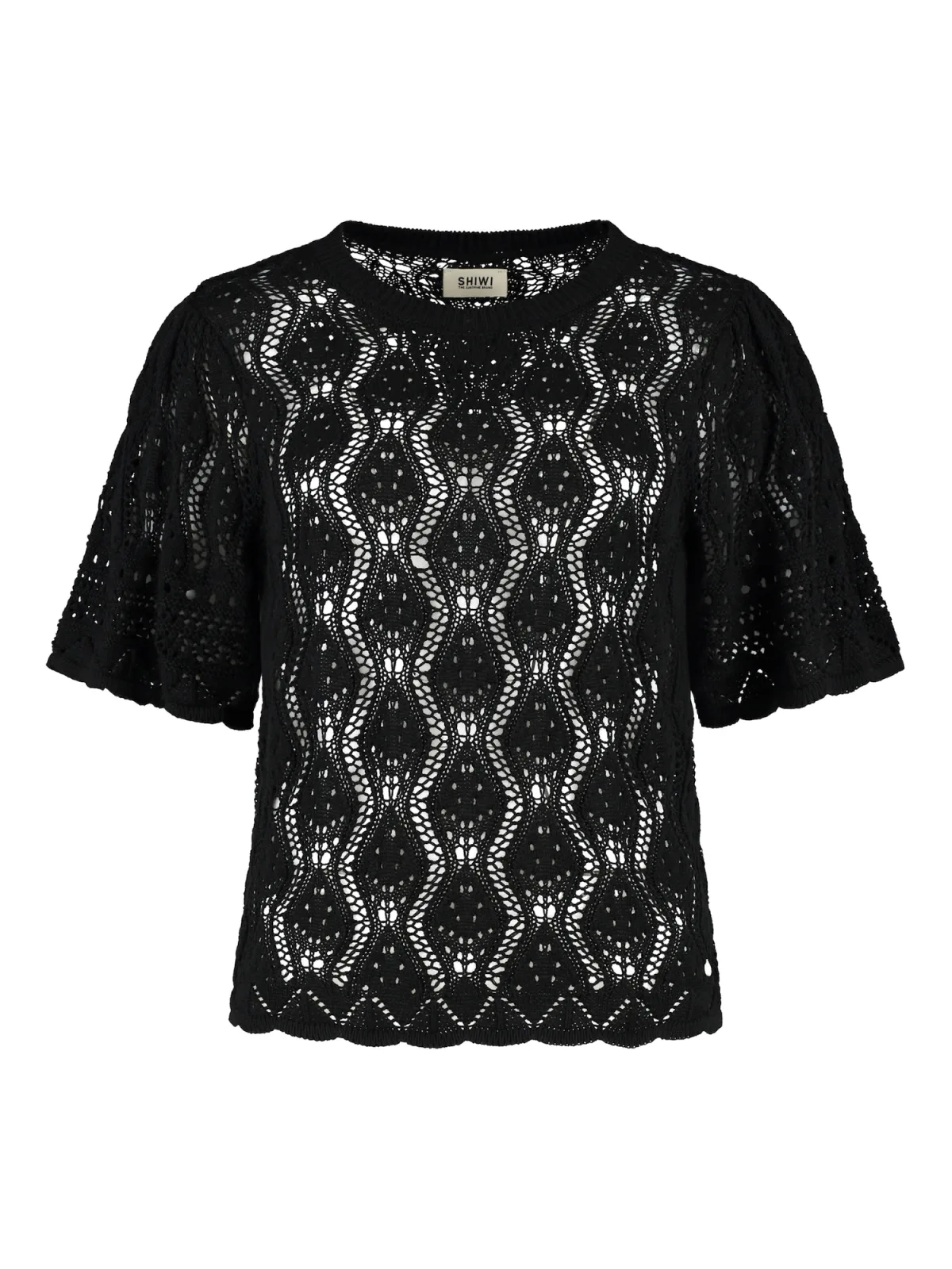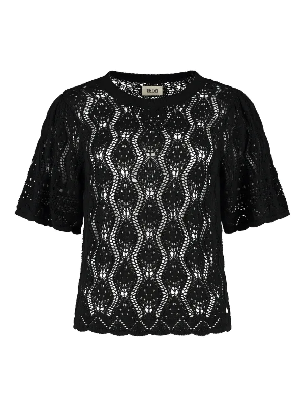 Design: Geribbelde kraag, Brede mouwopeningen; Materiaal: Knitwear; Halstype: Ronde hals; Motief: Effen; Details: Mesh; Extra's: Licht transparant, Voelt zacht aan; Pasvorm: Normale pasvorm; Armlengte: Halve mouw; Lengte: Normale lengte