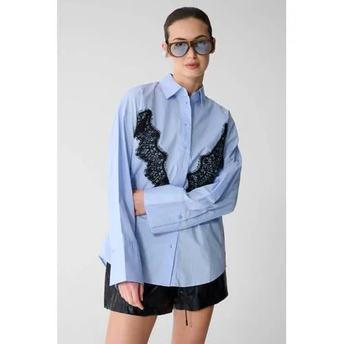 Voor een moeiteloos stijlvolle look is deze oversized kanten blouse blauw van Shoeby een praktische keuze. De lichtblauwe blouse heeft een ontspannen, oversized pasvorm en valt soepel om je lichaam. De lange mouwen en klassieke button-down kraag geven een nette basis, terwijl het subtiele kantdessin voor een verfijnde uitstraling zorgt. Gemaakt van zacht katoen voelt de blouse aangenaam aan op de huid, geschikt voor lange dagen.Details die deze blouse bijzonder maken Oversized model voor een ontspannen en moderne uitstraling Lichtblauwe kleur met zwarte accenten voor een rustig geheel met duidelijk kleurcontrast Klassieke kraag en lange mouwen met rechte mouwinzet Elegante knoopsluiting aan de voorkant Zacht katoen voor draagcomfort in het dagelijkse leven Delicaat kantdessin dat een verfijnde touch geeft Totale lengte van 73 cm bij maat XS/S Niet gevoerd en zonder zakken voor een rustige, cleane lookVoor je dagelijkse garderobeDeze blouse combineert goed met een jeans, pantalon of een korte rok. De oversized pasvorm maakt het eenvoudig om de blouse half in je broek te dragen of losjes over een smalle broek te laten vallen. Geschikt voor frisse lentedagen, een werkdag of een etentje.Shoeby: eigentijdse stijl voor elke dagShoeby staat voor toegankelijke mode met een eigen signatuur. De collecties zijn ontworpen voor dagelijks gebruik, met oog voor draagcomfort, pasvorm en stijlvolle details. Zo bouw je stap voor stap een garderobe op die past bij jouw leven.Een verfijnde blouse die je gemakkelijk vaak draagt.