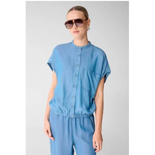 Voor een frisse, toch stoere look is deze denim blouse voor dames een fijne basis in je garderobe. De blouse heeft een medium blue denim kleur, maar voelt door de zachte lyocell juist licht en soepel aan. De rechte pasvorm en non-stretch stof geven een rustige uitstraling, terwijl de subtiele studs voor een speels accent zorgen.Details die het verschil maken Gemaakt van 100% lyocell, een zachte stof met een soepele valling Non-stretch kwaliteit voor een nette, vormvaste look Middellange lengte met een totale lengte van 62 cm bij maat S Korte, rechte mouwen die prettig vallen langs de armen Klassieke kraag en volledige knoopsluiting aan de voorkant Borstzak voor een casual denim uitstraling Effen medium blue denim kleur, makkelijk te combineren Wasbaar op 30 graden, dus eenvoudig te verzorgen Model is 176 cm lang en draagt maat S voor referentieEveryday blouse voor het hele seizoenDeze blouse komt uit de Daily collectie en past goed bij het lenteseizoen. Draag de blouse los op een jeans of pantalon, of open over een T-shirt voor een relaxte laagjeslook. De denimkleur combineert gemakkelijk met neutrale tinten en wit.Shoeby stijl voor elke dagShoeby ontwerpt kleding die past bij het dagelijks leven, met aandacht voor stijl en draagbaarheid. Deze blouse sluit daar mooi op aan door de mix van tijdloze denimlook en moderne details zoals de studs.Een doordacht item dat je garderobe op een rustige, maar opvallende manier aanvult.