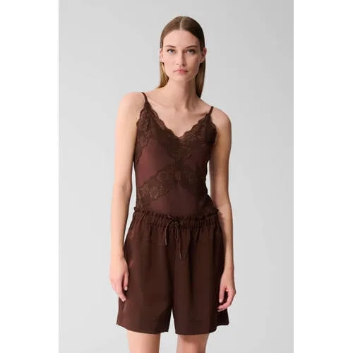 Deze top van Shoeby heeft een regular fit en spaghettibandjes. De V-hals en drukknoopsluiting maken het makkelijk te dragen, het kantdetail zorgt voor een vrouwelijke uitstraling en de stof is high-stretch.