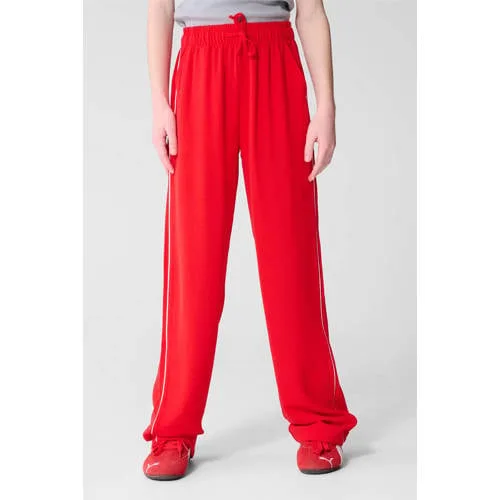 Laat haar spelen, rennen en ontspannen in deze Piping Wide Leg broek rood van Shoeby. De rode kleur valt direct op en de wide leg fit zorgt voor een losse look. Dankzij de high-waist pasvorm sluit de broek mooi aan in de taille en blijft alles goed op zijn plek tijdens een drukke schooldag of een middag buiten spelen.Comfort met een sporty detail Wide leg model voor extra bewegingsvrijheid bij benen en knieën High-waist taille die goed aansluit en zorgt voor een rustige lijn in het silhouet Elastische tailleband met aansnoerkoord voor een persoonlijke, comfortabele pasvorm Low-stretch materiaal dat vormvast blijft, ook na vaak wassen Praktische zakken aan de voorkant voor kleine spullen of haar telefoon Contrast bies langs de pijpen voor een sportief detail Lange pijpen, geschikt voor school, sportdag of een dagje weg Gemakkelijk te onderhouden, wasbaar op 30 gradenVoor schooldagen en vrije tijdDeze rode wide leg broek is een stevige basis voor alledaagse outfits. Combineer met een simpel T-shirt en sneakers voor school, of met een sweater als het frisser is. De soepele stof voelt prettig aan op de huid en geeft genoeg ruimte om vrij te bewegen, waardoor de broek geschikt is voor peuters, kleuters, schoolkinderen en tieners.Shoeby: eigentijdse kindermodeShoeby ontwerpt kinderkleding met een actuele stijl en aandacht voor draagcomfort in het dagelijks leven. De collecties sluiten aan bij trends, maar blijven praktisch en makkelijk te combineren. Zo kun je steeds opnieuw sets samenstellen waarin je kind zich prettig kan bewegen.Een kleurrijke, comfortabele broek waarin zij de hele dag vrij kan bewegen.