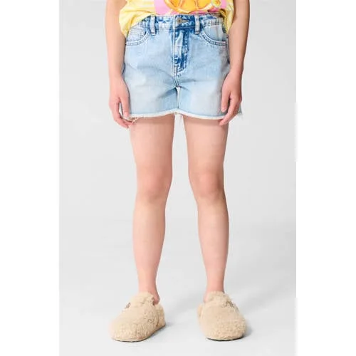 Deze lichtblauwe denim short voor meisjes van Shoeby is een praktische basic voor warme dagen. De lichte wassing geeft een frisse uitstraling en past makkelijk bij T-shirts, tops en truien. Door de non-stretch denim heeft de korte broek die echte jeanslook, met een stevige feel die mooi in model blijft. De high waist sluit hoog aan in de taille, wat zorgt voor een stoere en tegelijk nette fit.Kleine details die verschil maken Non-stretch denim voor een klassieke, stevige jeanslook High waist model dat hoog in de taille valt Rits- en knoopsluiting aan de voorkant Vijf-pocketstijl met twee achterzakken, twee voorzakken en een muntzakje Gemaakt van katoen en viscose voor een zachte touch aan de binnenkant Lichtblauwe denimkleur die makkelijk te combineren is Geschikt voor peuters, kleuters, schoolkinderen en tieners Wasbaar op 30 graden, handig voor dagelijks gebruikVoor elke dag en elk seizoenDeze denim short is ideaal voor schooldagen, vakanties en speelafspraken. In de zomer met sandalen of sneakers en een T-shirt, in het voor- of najaar met een maillot en een trui. De vaste tailleband zonder verstelbare elastiek zorgt voor een stabiele pasvorm, vooral fijn voor meiden die hun maat al goed hebben gevonden.Shoeby, vertrouwd en eigentijdsShoeby staat bekend om modieuze kinderkleding die past bij het dagelijks leven. De ontwerpen sluiten aan op de laatste trends, maar blijven praktisch en draagbaar. Met deze denim short kies je voor een kledingstuk dat mooi aansluit bij de rest van de Shoeby garderobe.Een stevige, lichtblauwe denim short waar je kind het hele seizoen veel plezier van heeft.
