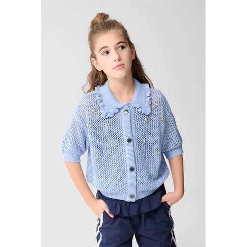 Maak elke outfit net wat specialer met dit Shoeby meisjes vest. Het korte mouwvest is gebreid van 100% katoen, waardoor het zacht aanvoelt op de huid en prettig is om te dragen. De ajourdetails, ruches en subtiele strass steentjes geven een speelse en verzorgde uitstraling, ideaal voor schooldagen, feestjes of een etentje met het gezin.Speelse details en comfortabel katoen Gemaakt van 100% katoen, prettig ademend en zacht voor de huid Low-stretch kwaliteit voor een mooie, stabiele pasvorm Korte, rechte mouwen, fijn voor de warmere seizoenen of als extra laagje Ajourbreisel en ruches zorgen voor een verfijnde en meisjesachtige look Strass steentjes voor een subtiele glans Effen kleur, gemakkelijk te combineren met jurkjes, rokken en jeans Knoopsluiting aan de voorkant, handig aan en uit te trekken Button down kraag voor een nette, verzorgde afwerkingVoor school, feest en alles ertusseninOver een T-shirt, jurk of top, dit vest past eenvoudig in de kledingkast. Door de effen kleur en de korte mouwen is het een handig laagje dat het hele seizoen door gedragen kan worden.Shoeby stijl voor jonge trendliefhebbersShoeby staat bekend om eigentijdse kleding met aandacht voor pasvorm en details. De collecties voor kids sluiten aan op wat kinderen graag dragen en wat ouders praktisch vinden, zodat je gerust kunt kiezen voor items die vaak en lang mee kunnen.Een vest dat comfort en speelse details combineert voor elke dag.