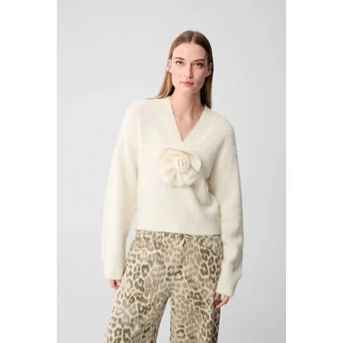 Shoeby gebreide trui met wol en bloem ecru Prijzen