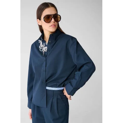 Deze donkerblauwe ruit blouse van Shoeby geeft je dagelijkse outfits een verzorgde, moderne uitstraling. De donkerblauwe dames blouse met ruit heeft een regular fit en valt op door het overhemdmodel met lange mouwen en klassieke kraag. De gladde, licht glanzende stof oogt netjes en houdt zijn vorm goed. Door de low-stretch kwaliteit blijft de pasvorm mooi strak, zonder te strak aan te voelen. In maat S heeft de blouse een totale lengte van 60 cm, wat prettig valt op een broek of rok met middelhoge taille.Details die je elke dag weer pakt Donkerblauwe kleur met subtiele ruit print voor een tijdloze, rustige look Regular fit met rechte mouwen, comfortabel voor dagelijks gebruik Klassieke kraag en volledige knoopsluiting voor een verzorgde uitstraling Low-stretch stof die vormvast is en netjes blijft vallen Gemaakt van 81% synthetische vezel, 17% viscose en 2% elastaan voor een soepele touch Totale lengte 60 cm in maat S, ideaal bij een jeans, pantalon of kokerrok Wasbaar op 30 graden, makkelijk in onderhoudVeelzijdige blouse voor werk en vrije tijdDeze donkerblauwe blouse past goed bij je dagelijkse garderobe. Combineer met een straight jeans en sneakers voor een ontspannen dag, of draag de blouse in een nette pantalon voor een meer feminine kantoorlook. De niet-doorzichtige, gladde stof maakt het een fijne keuze voor zowel zakelijke afspraken als etentjes.Shoeby: eigentijdse mode voor elke dagShoeby is een Nederlands modemerk dat bekendstaat om toegankelijke, trendbewuste collecties voor het hele gezin. De focus ligt op draagbare items die je makkelijk combineert en vaak uit de kast pakt. Met deze blouse haal je een stijlvaste basic in huis waar je seizoen na seizoen plezier van hebt.Een fijne keuze als je zoekt naar een nette blouse die moeiteloos meebeweegt met jouw drukke dag.