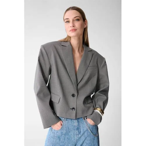 Shoeby geruite cropped blazer zwart Prijzen