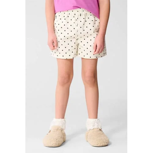 Deze speelse korte broek van Shoeby is een praktische basis voor zonnige dagen. De ecru kleur met zwarte stippen geeft elke outfit meteen iets vrolijks, terwijl de luchtige stof zorgt dat je kind zich de hele dag vrij kan bewegen. De zachte, geweven kwaliteit van 100% katoen voelt comfortabel aan op de huid en maakt deze korte broek voor meisjes passend voor school, spelen of een uitstapje in het weekend.Comfortabel en kindvriendelijk ontwerp Gemaakt van 100% katoen, voelt zacht en ademend aan Low-stretch kwaliteit, geeft een stevige maar comfortabele fit Hoge taille met elastische tailleband voor makkelijk aan- en uittrekken Praktische zakken voor en achter om kleine spullen in mee te nemen Ecru met zwarte stippen, eenvoudig te combineren met tops en T-shirts Wasbaar op 30 graden, geschikt voor dagelijks gebruikVoor elke dag, van peuter tot tienerDeze casual short past bij verschillende leeftijden, van peuter tot tiener. Een T-shirt en sneakers erbij en je kind is klaar om te spelen, rennen en ontdekken. Door de elastische tailleband blijft de broek goed zitten, ook tijdens actief bewegen.Shoeby: eigentijdse kinderkledingShoeby staat bekend om moderne collecties met een eigen signatuur. De kinderkleding is ontworpen met oog voor draaggemak en een actuele stijl, zodat jouw kind zich prettig voelt en er tegelijk verzorgd uitziet.Een vrolijke, comfortabele short die passend is voor warme dagen.