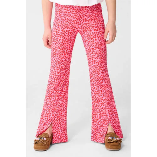 Shoeby high waist flared broek met hartjes roze