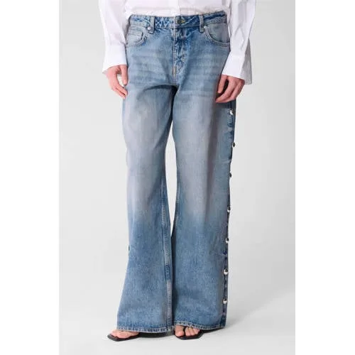 Voor wie houdt van tijdloze denim met een stoere twist is deze Shoeby wide leg jeans een sterke basis in de garderobe. De Big Stud Wide Leg Fit Jeans in mediumstone blauw heeft een high-waist pasvorm en rechte, wijde pijpen die je silhouet mooi laten uitkomen. Het non-stretch denim van 100% katoen geeft een authentieke jeanslook met een stevige feel, terwijl de gewassen finish voor een gedragen effect zorgt.Opvallende details in een klassiek silhouet Wide leg fit met lange broekspijpen voor een moderne, ontspannen look High-waist model dat mooi aansluit in de taille Afgewerkt met studs langs de zijkanten voor een stoere, opvallende touch Gemaakt van 100% katoen, non-stretch denim met een klassieke, stevige uitstraling Praktische rits- en knoopsluiting en een klassieke five pocket uitvoering Mediumstone blauwe wassing die makkelijk te combineren is met verschillende tops Totale lengte van 83,8 cm bij maat S, geschikt voor lange, rechte looksStyling van casual tot uitgesprokenDe Big Stud Wide Leg Fit Jeans laat zich eenvoudig stylen. Combineer met een basic T-shirt of trui voor een rustige outfit, of kies een opvallende top om de studs extra te laten spreken. Sneakers, laarsjes of hakken, deze jeans past zich makkelijk aan jouw stijl en moment aan.Shoeby: eigentijdse mode voor elke dagShoeby staat voor draagbare mode met een herkenbare stijl. De collecties worden ontworpen met oog voor details, pasvorm en materialen, zodat je elke dag weer een bewuste keuze maakt uit je kledingkast. Met deze jeans haal je een betrouwbaar item in huis dat lang mooi blijft en vaak uit de kast komt.Een stoere denim basic met karakter, klaar om vaak en met plezier te dragen.