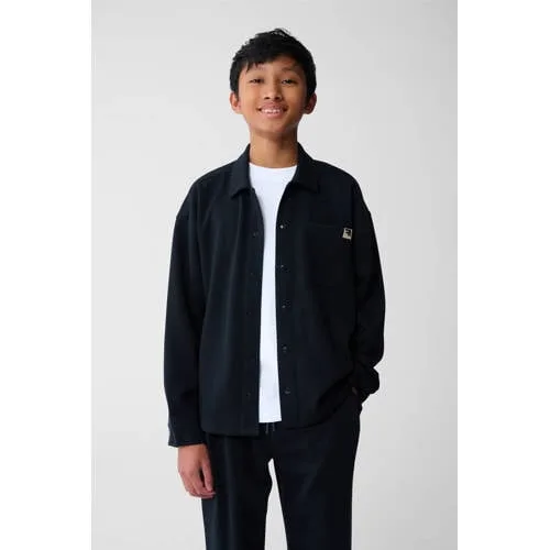 Stoer, comfortabel en makkelijk te combineren, dat is het Shoeby overshirt jongens in donkergrijs. Dit antracietkleurige overshirt heeft een relaxed, loose fit en lange mouwen, waardoor het fijn ruim valt zonder te groot te ogen. De stevige, low-stretch stof met subtiele textuur zorgt voor een nette uitstraling en voelt tegelijk prettig aan tijdens het dragen. Dankzij de klassieke kraag en de drukknoopsluiting sluit het model mooi aan en krijgt het een moderne, cleane look. Ideaal om te dragen over een T-shirt of dunne trui.Praktische details voor elke dag Loose fit voor een ontspannen pasvorm met genoeg bewegingsvrijheid Low-stretch kwaliteit voor een vormvaste look, ook na vaak dragen Gemaakt van 81% polyester, 17% viscose en 2% elastaan voor een soepele, stevige stof Lange mouwen en klassieke kraag voor een tijdloos silhouet Drukknoopsluiting over de hele voorkant voor snel aan- en uittrekken Borstzak als handig detail en om de effen voorkant te doorbreken Effen antracietkleur, makkelijk te combineren met verschillende outfitsVan schooldag tot weekendDit overshirt is geschikt voor verschillende momenten. Op een gewone schooldag gaat het gemakkelijk over een basic T-shirt, terwijl het in het weekend ook goed past bij een jeans of cargobroek. De textuur in de stof geeft extra diepte aan de outfit zonder dat het druk oogt.Shoeby: eigentijdse stijl voor kidsShoeby staat voor toegankelijk design met oog voor pasvorm en detail. De kindercollecties zijn ontwikkeld voor dagelijks gebruik, met materialen die prettig aanvoelen en ontwerpen die afgestemd zijn op actieve kinderen. Zo combineert Shoeby comfort met een moderne, herkenbare stijl.Een veelzijdig overshirt dat moeiteloos meegaat in drukke schooldagen en ontspannen weekenden.