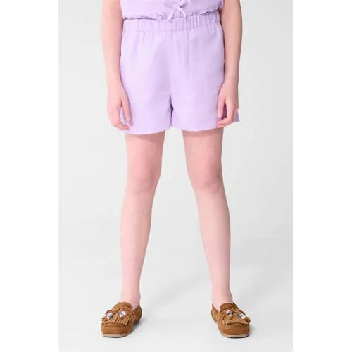 De lichtpaarse korte broek voor meisjes van Shoeby geeft elke outfit een frisse, sportieve uitstraling. De regular fit in combinatie met de high-waist heuphoogte zorgt voor een comfortabele pasvorm die aansluit zonder strak te zitten. De short heeft een subtiele structuur in de stof en een elastische tailleband die soepel meebeweegt bij elke stap en sprong. Dankzij het lichte, sneldrogende materiaal blijft de broek de hele dag prettig aanvoelen, of het nu een actieve dag buiten is of een relaxte middag thuis.Comfort en stijl in één short Lila kleur met effen ontwerp voor een rustige, sportieve uitstraling Regular fit en high-waist voor een comfortabele en nette pasvorm Elastische tailleband voor gemakkelijk aan- en uittrekken Structuur in de stof voor een speels effect Licht en sneldrogend materiaal, geschikt voor warme dagen Casual short zonder zakken voor een strak en clean silhouet Geschikt voor peuter, kleuter, schoolkind en tiener Te dragen als losse short of als deel van een co-ord setVoor schooldagen en vrije tijdDeze korte broek past goed bij T-shirts, tops of een hoodie. Geschikt voor school, sportieve activiteiten of een dagje weg. Sneakers eronder en je kind is klaar om te gaan.Shoeby: eigentijdse mode voor kidsShoeby staat voor toegankelijke mode met een eigen stijl. De kinderkledingcollecties sluiten aan op de laatste trends en zijn praktisch in het dagelijks leven. Zo combineert Shoeby een actuele stijl met draagbaar gemak.Een korte broek die het hele seizoen meegaat, van speelplein tot vakantie.