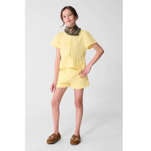 Shoeby regular high waist casual short lichtgeel met textuur