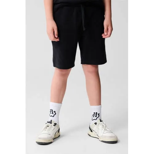 Deze zwarte sweatshort van Shoeby is een fijne basis voor elke dag. De korte broek voor jongens heeft een middelhoge taille en een regular fit, waardoor hij soepel valt en genoeg bewegingsvrijheid geeft. De stof voelt zacht aan, maar oogt stevig en netjes, ideaal voor school, sporten of ontspannen thuis.Details voor dagelijks draaggemak Middelhoge taille met elastische tailleband en strikkoord voor een comfortabele, aansluitende pasvorm Regular fit voor voldoende ruimte om te bewegen Low-stretch materiaal dat vormvast blijft tijdens het dragen en wassen Zachte kwaliteit met katoen aan de buitenkant voor een prettig huidgevoel Effen zwarte kleur die makkelijk combineert met T-shirts, hoodies en sweaters Voorzakken en een achterzak voor kleine essentials zoals sleutels of een kaartje Wasbaar op 30 graden, handig voor veelvuldig gebruikComfortabele sweatshort voor school en vrije tijdDeze Towling short is geschikt voor peuters, kleuters, schoolkinderen en tieners. Door de soepele stof en de elastische tailleband kan hij snel worden aangetrokken, wat prettig is op drukke ochtenden. De effen zwarte kleur past bij opvallende prints, rustige basics en sneakers in elke kleur.Shoeby, eigentijdse kindermodeShoeby staat bekend om modieuze en toegankelijke kleding voor het hele gezin. De kinderkleding is ontworpen met oog voor pasvorm en comfort, zodat kinderen vrij kunnen bewegen en spelen. Door trends te combineren met praktische details, biedt Shoeby collecties die goed aansluiten op het dagelijks leven.Een veelzijdige korte broek waar je kind het hele seizoen plezier van heeft.
