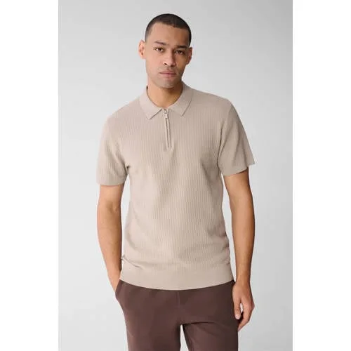 Deze lichtbruine gebreide heren polo met halve rits van Shoeby is een fijne basic voor elke dag. De polo heeft een regular fit en korte mouwen, waardoor hij ontspannen valt zonder wijd te ogen. De klassieke polokraag in combinatie met de halve rits geeft een verzorgde, moderne uitstraling. De fijne ribstructuur zorgt voor extra diepte in de stof en maakt dit T-shirt geschikt voor zowel werk als vrije tijd.Kenmerken van de lichtbruine zipper polo Regular fit voor een comfortabele, rechtvallende pasvorm Korte mouwen en klassieke polokraag voor een nette, casual look Halve rits aan de voorkant voor een moderne twist en makkelijk aan- en uittrekken Lichtbruine effen kleur die eenvoudig te combineren is Fijn gebreide ribstructuur voor een verzorgde uitstraling Gemaakt van 80% katoen met een zachte touch en een vormvaste low-stretch feel Totale lengte van 70.75 cm bij maat L Wasbaar op 30 graden, praktisch in onderhoud Model is 186 cm lang en draagt maat LVoor werk, weekend en alles daartussenDeze polo past net zo goed bij een chino op kantoor als bij een jeans in het weekend. De low-stretch kwaliteit voelt stevig aan en blijft mooi in model, waardoor de polo de hele dag netjes blijft zitten.Shoeby stijl voor elke dagShoeby staat bekend om toegankelijke mode voor elke dag, met aandacht voor pasvorm en draaggemak. Deze lichtbruine zipper polo sluit daar naadloos op aan: een moderne basic die je eenvoudig combineert en vaak uit de kast zult pakken.Een veelzijdig shirt dat je garderobe op een subtiele manier aanvult.