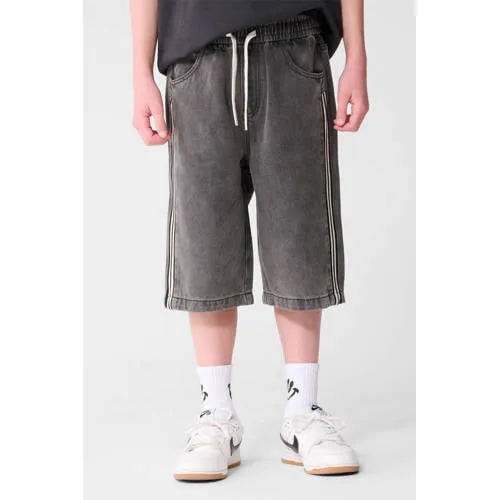 De grijze denim korte broek voor jongens van Shoeby heeft een relaxte streetstyle uitstraling die makkelijk te combineren is. Deze denim short valt op middellange lengte, heeft een regular waist en een comfortabele, losse fit. Ideaal voor schooldagen, buitenspelen of een casual dagje weg.Sportieve details en dagelijks comfort Low-stretch denim voor een stevige feel met toch genoeg bewegingsvrijheid Elastische tailleband met koord, fijn voor snel aan- en uittrekken Grijze 'grey denim' kleur die goed past bij T-shirts, hoodies en sweaters Zijstrepen en contrast bies voor een sportieve, moderne look Vijfpocketmodel, handig voor kleine spullen zoals een sleutel of kaartje Geschikt voor dagelijks gebruik, van spelen tot school en uitstapjes Soepel materiaal met katoen dat zacht aanvoelt op de huid Wasbaar op 30 graden, praktisch voor dagelijks gebruikStoere short voor elke dagDeze Sporty Denim Short is gemaakt voor actieve dagen. De elastische tailleband blijft prettig zitten bij rennen, fietsen en spelen, terwijl de low-stretch denim mooi in vorm blijft. Combineer met sneakers en een T-shirt voor een sportieve look of met een sweater als het wat frisser is.Shoeby voor kids met stijlShoeby ontwerpt kinderkleding met aandacht voor pasvorm, comfort en een eigentijdse uitstraling. Collecties sluiten aan op de laatste trends, maar zijn ook praktisch in het dagelijks leven. Met deze korte broek krijgt je kind een stoere, moderne jeanslook die prettig draagt en makkelijk te stylen is.Een sportieve denim short waar je kind zich de hele dag vrij in kan bewegen.