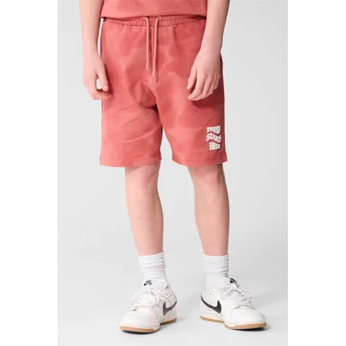 Deze rode korte broek voor jongens van Shoeby is gemaakt voor actieve dagen, chillmomenten en alles daartussenin. De sweatshort heeft een relaxed fit en een regular waist, waardoor er voldoende bewegingsruimte is zonder wijd te vallen. Het zachte materiaal van 100% katoen voelt comfortabel aan op de huid en is geschikt voor dagelijks dragen, van peuter tot tiener.Praktische details voor elke dag Gemaakt van 100% katoen, voor een zachte touch en prettig draagcomfort Low-stretch kwaliteit, blijft mooi in vorm tijdens het dragen en wassen Elastische tailleband met koord voor een stevige, maar comfortabele aansluiting Relaxed fit en regular waist, ideaal om vrij in te bewegen Handige zakken voor en één zak achter voor kleine essentials Onderdeel van een co-ord set, eenvoudig te combineren met een bijpassend item Wasbaar op 30 graden, gemakkelijk in het onderhoudComfortabele sweatshort voor school en vrije tijdDeze sweatshort past bij drukke schooldagen, buitenspelen of een relaxte dag thuis. De effen rode kleur met subtiele tekstdetails geeft een sportieve uitstraling die goed matcht met T-shirts, hoodies en sneakers. Door de elastische taille is de broek snel aan en uit, wat fijn is voor jongere kinderen.Shoeby stijl voor kidsShoeby staat bekend om eigentijdse kindermode met een stoere, modieuze uitstraling. De collecties sluiten aan bij de nieuwste trends en zijn ontworpen met oog voor draaggemak. Zo combineert Shoeby een herkenbare stijl met praktische details waar zowel kids als ouders blij van worden.Een comfortabele basic met een trendy look, klaar voor elke dag.