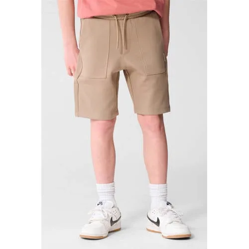 De taupe sweatshort voor jongens is een fijne basis voor actieve en warme dagen. Deze korte broek heeft een regular fit met een mid-waist hoogte, zodat de broek comfortabel rond de heupen valt. De luchtige sweatkwaliteit voelt zacht aan en biedt net genoeg low-stretch voor een natuurlijke pasvorm zonder strak te zitten. De zachte taupe kleur laat zich makkelijk combineren met T-shirts, hoodies en sneakers.Praktische details voor elke dag Gemaakt van 86% katoen, in een zachte sweatkwaliteit die prettig aanvoelt op de huid Low-stretch materiaal voor een natuurlijke, stabiele pasvorm Elastische tailleband met koord voor makkelijk aan- en uittrekken en een flexibele fit Zakken aan de voorkant en een zak achter, handig voor kleine spullen Effen taupe kleur, eenvoudig te combineren met verschillende tops Wasbaar op 30 graden, passend bij dagelijks gebruik Geschikt voor peuter en kleuter, schoolkind en tiener door de brede maatboogLuchtige korte broek voor warme dagenDeze sweatshort is ideaal voor schooldagen, buitenspelen of vakantie. De combinatie van een elastische tailleband met koord en het luchtige materiaal maakt de short comfortabel om in te bewegen, of je kind nu rent, fietst of gewoon relaxed.Shoeby voor trendy kidsShoeby staat bekend om kinderkleding die inspeelt op de laatste trends, maar ook praktisch is in het dagelijks leven. De collecties zijn ontwikkeld met aandacht voor draagcomfort, pasvorm en combinatiemogelijkheden, zodat je eenvoudig een garderobe samenstelt die past bij de stijl en het tempo van je kind.Een comfortabele keuze voor jongens die graag vrij bewegen en er tegelijkertijd verzorgd uitzien.