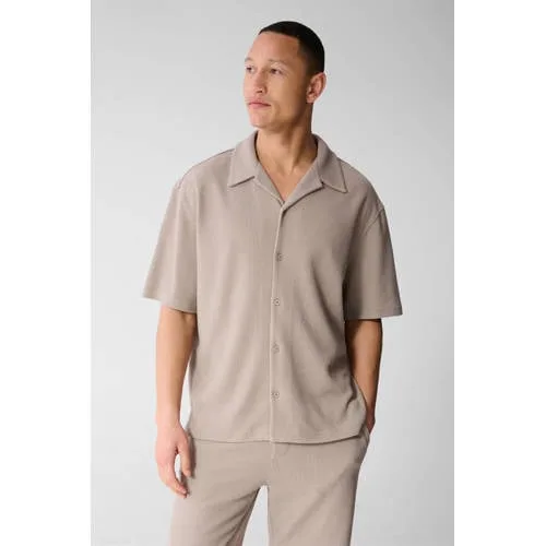 Shoeby relaxed casual overhemd rib gebreid lichtbruin