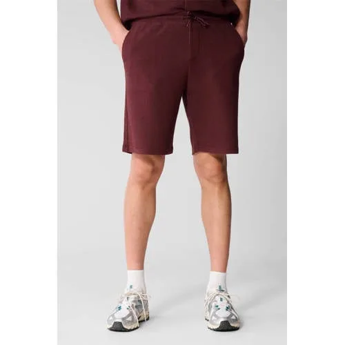 Deze Shoeby donkerrode sweatshort voor heren geeft elke outfit een rustige, verzorgde basis. De korte broek heeft een relaxed regular fit, een mid-waist heuphoogte en is uitgevoerd in een comfortabele sweatkwaliteit met ribstructuur. Het effen design in donkerrood laat zich makkelijk combineren, van T-shirt tot hoodie. De elastische tailleband met koord zorgt voor een flexibele, meebewegende sluiting die prettig zit, de hele dag door.Comfortabele basic met praktische details Relaxed regular fit voor een nonchalante maar verzorgde look Ribstructuur voor een sportieve uitstraling en extra bewegingsvrijheid Elastische tailleband met koord voor een persoonlijke pasvorm Low-stretch materiaal dat stevig aanvoelt en mooi in vorm blijft Effen donkerrode kleur, makkelijk te combineren met basics en co-ord items Zakken voor en een achterzak voor het meenemen van kleine essentials Totale lengte van 50 cm bij maat L Gemaakt van katoen, zacht en ademend voor dagelijks draagcomfort Wasbaar op 30 graden, praktisch in het onderhoudIdeaal voor vrije tijd en relaxte dagenIn de dagelijkse collectie van Shoeby past deze sweatshort perfect bij ontspannen momenten. Combineer met een bijpassende sweater of T-shirt voor een co-ord set, of draag de short met een simpel wit shirt en sneakers voor een rustige, sportieve look.Shoeby: eigentijdse stijl voor elke dagShoeby staat voor toegankelijke mode met een moderne uitstraling. De collectie is afgestemd op dagelijks gebruik, met aandacht voor pasvorm, draaggemak en combinatiemogelijkheden. Zo voeg je met deze short makkelijk een praktische basis toe aan je garderobe.Een comfortabele keuze voor dagen waarop je relaxed maar toch verzorgd voor de dag wilt komen.