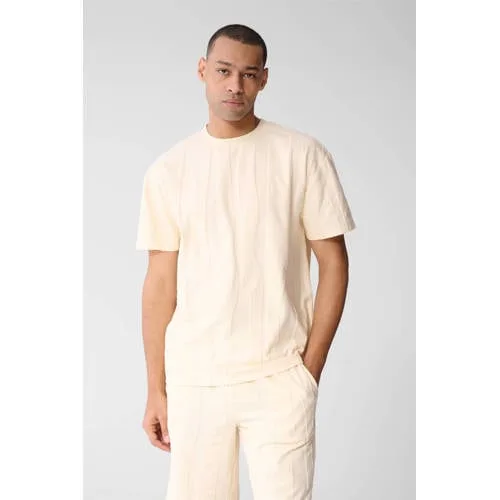 Ga voor een relaxte look met dit lichtgele heren T-shirt met wavy patroon van Shoeby. De frisse kleur en subtiele golfstructuur in de stof geven elke outfit een moderne, nuchtere uitstraling. De relaxed fit valt soepel om het lichaam, zonder te strak te zitten, en de ronde hals maakt het T-shirt makkelijk te combineren met je favoriete jeans, chino of korte broek.Details die het elke dag makkelijk maken Relaxed fit voor een comfortabele, iets ruimere pasvorm Lichtgele kleur met wavy effect voor een moderne, rustige look Korte mouwen en ronde hals, praktisch voor dagelijks gebruik Gemaakt van zacht katoen, dat prettig en ademend aanvoelt Low-stretch materiaal houdt de pasvorm stevig en vormvast Totale lengte 70.5 cm in maat L, geschikt voor een gemiddelde lichaamslengte Wasbaar op 30 graden, dus eenvoudig in onderhoud Onderdeel van een co-ord set, voor een afgestemde outfitCasual stijl voor iedere dagDit T-shirt past goed in een dagelijkse garderobe. Draag het los over een jeans voor een ontspannen look of stop de voorkant in een broek met rechte pijpen. De low-stretch stof zorgt dat het T-shirt netjes in model blijft, ook na vaak wassen.Shoeby: eigentijdse mode voor elke dagShoeby staat voor toegankelijke mode met een eigentijdse stijl. De collecties zijn afgestemd op dagelijks draaggemak, met aandacht voor pasvorm en details. Zo voeg je met dit T-shirt een stijlvol basisitem toe aan je garderobe.Comfortabele basics met een moderne twist voor elke dag.