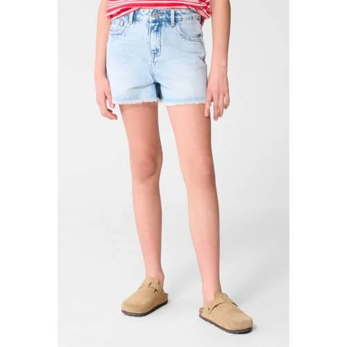 Deze zomerse denim short voor meisjes in light blue denim is gemaakt voor speelse dagen in de zon. De short heeft een high-waist pasvorm met regular fit, waardoor de short prettig aansluit zonder strak te zitten. De subtiele low-stretch zorgt dat de stof mooi in model blijft, terwijl je kind toch genoeg bewegingsvrijheid heeft.Stoere details en praktisch design Blauwe denim short met rafelzoom voor een casual, zomerse uitstraling High-waist heuphoogte en regular fit voor een comfortabele pasvorm 5-pocket model met rits- en knoopsluiting en riemlussen Aardbei embroidery op de achterzak als speels detail Gemaakt van 90% katoen voor een zachte, stevige stof Wasbaar op 30 graden, fijn voor dagelijks gebruik Geschikt voor peuter en kleuter, schoolkind en tiener Low-stretch kwaliteit waardoor de short mooi blijft zittenElke dag een denim item voor je kindDeze short past makkelijk in de garderobe van je dochter. Combineer met een T-shirt en sandalen voor naar school of met een luchtige blouse voor een dagje uit. De light blue denim kleur sluit mooi aan bij zowel basics als opvallende tops.Shoeby: eigentijdse kindermodeShoeby ontwerpt kinderkleding met aandacht voor pasvorm, comfort en een moderne uitstraling. De collecties sluiten aan op de laatste trends en zijn tegelijk praktisch voor elke dag. Zo haal je met deze short een praktisch basisstuk in huis voor dagelijks gebruik.Een frisse denim short die klaar is voor zonnige dagen en actieve momenten.