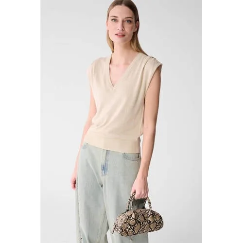 Laat je outfit subtiel schitteren met deze mouwloze Shoeby glitter trui dames. De top heeft een V-hals en een effen design dat wordt opgefrist door fijne glitterdetails. Eenvoudig design met glinsterende detailsMouwloos model met rechte schouderlijn voor een moderne uitstralingV-hals die de halslijn duidelijk accentueert, geschikt voor het dragen van sieradenEffen kleur met glitters voor een subtiele glans, passend bij zowel overdag als in de avondGemaakt van 75% viscose, 16% polyamide en 9% metallic voor een zachte touch met een glanzende finishVeelzijdig in dagelijkse outfitsDeze mouwloze trui past goed in verschillende outfits. Het ingetogen, glanzende ontwerp maakt de top geschikt voor zowel zakelijke omgevingen als informele momenten. Ook onder een blazer of vest blijft de glitterstructuur duidelijk zichtbaar.Shoeby stijl voor elke dagShoeby biedt toegankelijke mode met een eigentijdse uitstraling. De collecties sluiten aan op trends en blijven tegelijkertijd praktisch voor dagelijks gebruik. Zo voeg je met deze top eenvoudig een item toe dat zowel comfortabel draagt als verzorgd oogt.Een glittertop die verschillende gelegenheden ondersteunt en je kledingkast praktisch aanvult.