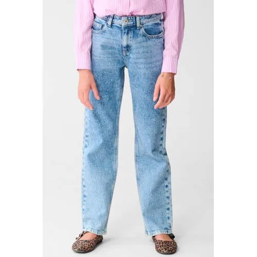 Deze Shoeby jeans voor meisjes heeft een straight fit en regular waist. Gemaakt van medium blue denim, met een rits- en knoopsluiting. De low-stretch stof is perfect voor dagelijks gebruik. Afgewerkt met strass steentjes.