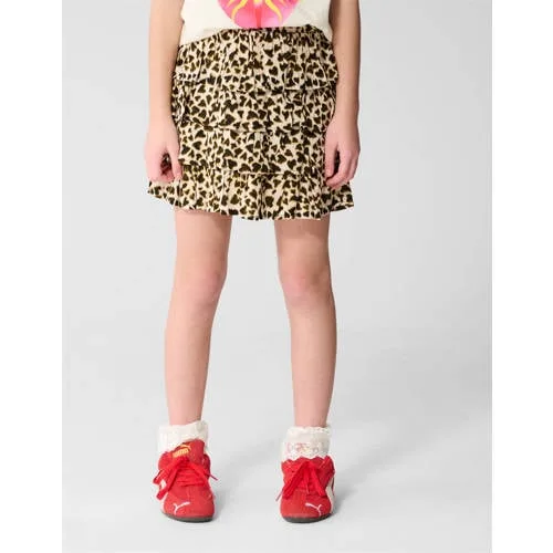 Deze lichtbruine Shoeby meisjes rok met panterprint is gemaakt om elke dag weer uit de kast gepakt te worden. De korte strokenrok valt soepel langs de benen en heeft speelse ruches die bij elke stap meebewegen. De all-over dierenprint geeft een stoere twist, terwijl de lichte kleur toch zacht oogt. Door de low-stretch kwaliteit blijft het model mooi in vorm, ook na vaak dragen en wassen.Speelse details en comfortabel model Korte strokenrok met ruches voor een speels en zwierig effect Lichtbruine panterprint voor een trendy uitstraling Elastische tailleband voor eenvoudig aan- en uittrekken Gemaakt van 100% viscose, een soepele stof met fijne, luchtige feel Low-stretch kwaliteit waardoor de rok mooi in model blijft Geen zakken voor een rustige, slanke vorm Wasbaar op 30 graden, praktisch in het dagelijks onderhoud Verkrijgbaar voor peuter, kleuter, schoolkind en tienerElke dag makkelijk aan te trekkenDe elastische tailleband zorgt ervoor dat deze rok snel en zonder gedoe aangaat. Ideaal voor drukke ochtenden of wanneer zelf aankleden al goed lukt. De luchtige stof draagt prettig op school, tijdens een feestje of een dagje weg.Shoeby voor kids met eigen stijlShoeby staat bekend om kinderkleding die meegaat met trends en toch makkelijk te dragen blijft. Met aandacht voor pasvorm en details creëert het merk items waarin kinderen zich vrij kunnen bewegen en hun eigen smaak kunnen laten zien.Een speelse rok die er elke dag weer klaar voor is.