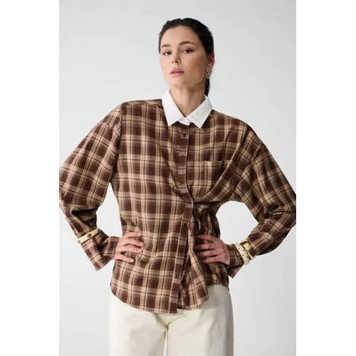 Shoeby Studio oversized geruite blouse bruin Prijzen
