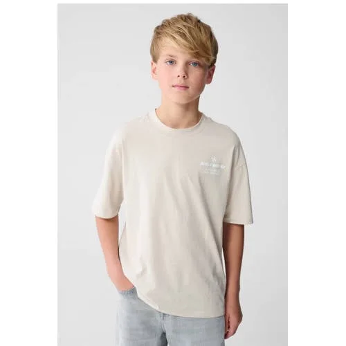 Op zoek naar een makkelijk te combineren basic met een stoere twist voor de kledingkast van je kind, dan is dit beige jongens T-shirt van katoen een praktische optie. De rustige kleur en subtiele tekstprint maken het shirt geschikt voor elke dag, van school tot weekend. De regular fit met ronde hals en korte mouwen zorgt voor een ontspannen uitstraling en veel bewegingsvrijheid.Comfortabele basic met subtiele print Gemaakt van 100% katoen, voelt zacht aan op de huid Low-stretch kwaliteit voor een vormvast en prettig draaggevoel Beige kleur met subtiele printopdruk voor een rustige, eigentijdse look Regular fit met middellange lengte, ideaal voor op een jeans of short Ronde hals en korte mouw, geschikt voor het hele jaar door in laagjes Geen zakken, waardoor de print mooi centraal blijft Wasbaar op 30 graden, makkelijk te onderhouden Beschikbaar voor peuters, kleuters, schoolkinderen en tienersElke dag weer makkelijk aan te trekkenDit T-shirt past eenvoudig bij een jogger, stoere jeans of korte broek. In de zomer draag je het los, op frissere dagen onder een vest of hoodie. Zo heeft je kind met dit shirt veel combinatiemogelijkheden voor de hele week.Shoeby voor kids met een eigen stijlShoeby staat bekend om kinderkleding die inspeelt op de laatste trends met praktische details voor elke dag. Zo combineert dit T-shirt een moderne print met draagcomfort, zodat je kind zich vrij kan bewegen en er verzorgd uitziet.Een veelzijdig shirt dat in veel outfits past.