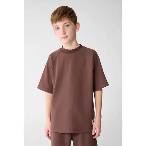 Dit donkerbruine oversized jongens T-shirt van Shoeby is een fijne basic met een stoere twist. De grove wafflestructuur geeft direct een eigen karakter, terwijl de relaxed vallende pasvorm zorgt voor een moderne look. Ideaal voor jongens die graag vrij kunnen bewegen en tegelijk netjes voor de dag komen.Comfortabele pasvorm en stoere textuur Oversized fit voor een ontspannen, moderne uitstraling Korte mouwen en middelgrote lengte, handig te combineren met verschillende broeken Gemaakt van een zachte sweatstof met low-stretch, waardoor het T-shirt mooi in model blijft Waffle textuur voor extra diepte en een speels effect in de stof Ronde hals die prettig aansluit zonder te strak te zitten Effen donkerbruine kleur die makkelijk te combineren is Wasbaar op 30 graden, praktisch in het dagelijks wassen Geschikt voor peuters, kleuters, schoolkinderen en tienersCo-ord set voor een complete outfitDit T-shirt maakt deel uit van een co-ord set. Zo ontstaat er een rustige, samenhangende outfit die in één keer goed is. Ook los op een jeans, short of jogger past het donkerbruin gemakkelijk in de kledingkast.Shoeby voor kids met een eigen stijlShoeby ontwerpt kindermode die inspeelt op de laatste trends en toch praktisch blijft voor elke dag. Verwacht eigentijdse pasvormen, comfortabele stoffen en kleuren die makkelijk te combineren zijn. Zo wordt aankleden net even leuker voor zowel kinderen als ouders.Een veelzijdig T-shirt dat snel een favoriet wordt in de kast.
