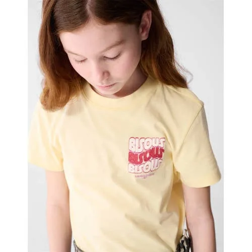 Het lichtgele Bisous glitter artwork T-shirt van Shoeby is een vrolijke basic met een speelse twist. Dit glitter T-shirt voor meisjes heeft een regular fit, korte mouwen en een ronde hals. De subtiele glitter in de tekstprint zorgt voor een sprankelend detail, zonder dat het te veel opvalt. Door de zachte stof en het fijne draaggevoel is dit T-shirt ideaal voor dagelijks gebruik.Comfortabel en speels in één Gemaakt van 100% katoen, voelt zacht aan en is prettig ademend Regular fit met low-stretch voor een mooie, stevige pasvorm Lichtgele kleur geeft elke outfit een zonnige uitstraling Tekstprint met subtiele glitters voor een speels accent Korte, rechte mouwen en ronde hals voor een tijdloze look Wasbaar op 30 graden, handig in het dagelijks wassen Geschikt voor peuter en kleuter, schoolkind en tienerMakkelijk te combineren in elke garderobeDit T-shirt past eenvoudig bij een korte broek, jeans of een rok. Voor school, een speelafspraak of een dagje weg, de lichtgele kleur en het rustige dessin maken het een toegankelijke keuze voor veel momenten.Shoeby als vertrouwde stijlpartnerShoeby staat bekend om eigentijdse collecties voor kinderen die graag hun eigen stijl laten zien. Met aandacht voor draagcomfort en doordachte details biedt Shoeby kleding die past bij een actief dagelijks leven.Een zonnig T-shirt waarmee elke dag nét wat vrolijker begint.