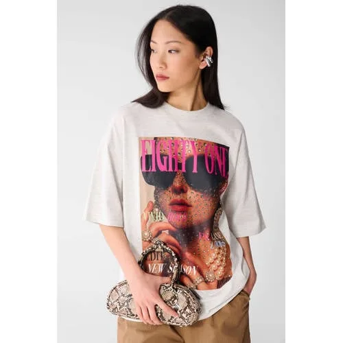 Ga voor een ontspannen, stoere look met dit dames T-shirt met magazine artwork van Shoeby. De lichtgrijze ecru/roze tinten en de opvallende printopdruk geven je outfit direct een streetstyle uitstraling. Dankzij de oversized fit valt het T-shirt losjes om je lichaam, terwijl de middel-lange lengte zorgt voor een moderne, easy fit op je broek of rok.Details die het verschil maken Oversized fit voor een relaxte, moderne uitstraling Lichtgrijze ecru/roze kleur met opvallend magazine artwork dessin Korte, rechte mouwen en een klassieke ronde hals Gemaakt van 99% katoen en 1% viscose, de stof voelt zacht en ademend aan Low-stretch materiaal dat stevig aanvoelt en mooi in model blijft Sierstenen op het artwork voor een subtiel, speels accent Totale lengte 66,5 cm bij maat XS/S, middel-lange pasvorm Wasbaar op 30 graden, 1 stuk per verpakking Model is 176 cm lang en draagt maat XS/SCasual everyday T-shirt voor je daily looksDit T-shirt komt uit de Daily collectie en past makkelijk in je bestaande garderobe. Draag het los over een jeans voor een relaxte daglook of steek de voorkant nonchalant in een taillebroek voor iets meer vorm. De soepele stof beweegt prettig mee, ideaal voor warme zomerdagen.Shoeby: eigentijdse stijl voor elke dagShoeby staat bekend om draagbare mode met een eigen karakter. Collecties worden ontwikkeld met aandacht voor pasvorm en details, zodat je items keer op keer met plezier uit de kast pakt. Met dit T-shirt haal je een betrouwbare basic met een opvallend accent in huis.Een relaxed T-shirt dat je zonder nadenken aantrekt en toch net wat extra uitstraling geeft.