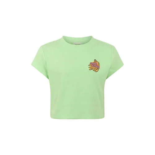 Fris, zacht en makkelijk te combineren, dit lichtgroen meisjes T-shirt van Shoeby is een fijne basic voor elke dag. De lichtgroene kleur geeft direct een vrolijke uitstraling en past goed bij zowel een stoere jeans als een zwierige rok. Dankzij de ribgebreide stof sluit het T-shirt mooi aan, zonder strak te zitten.Comfortabele basic met fijne details Gemaakt van 95% katoen / 5% elastaan voor een zachte touch met comfortabele stretch Rib gebreid materiaal dat soepel meebeweegt met elke sprong en draai Korte, rechte mouwen die lekker luchtig aanvoelen op warmere dagen Ronde hals die prettig zit en makkelijk over het hoofd gaat Effen lichtgroene kleur die goed matcht met denim, shorts of een legging Geschikt voor peuter, kleuter, schoolkind en tiener door de brede maatboogVoor school, speelplein en logeerpartijtjesDit T-shirt is ideaal voor dagen vol beweging. Voor naar school met een spijkerbroek en sneakers, of voor het weekend met een comfy jogger. De elastische ribstof blijft prettig zitten, ook tijdens spelen, fietsen of gymles.Shoeby voor kids met eigen smaakShoeby ontwerpt kinderkleding met oog voor actuele trends en dagelijks gemak. De collectie voor meisjes bestaat uit items die goed te combineren zijn en die tegen een stootje kunnen. Zo bouw je met Shoeby eenvoudig een garderobe op die past bij de smaak en het tempo van je kind.Een praktische basic waar je kind zich vrij in kan bewegen, elke dag opnieuw.
