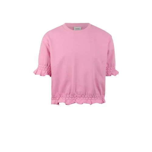 Dit lichtroze meisjes T-shirt met ruches van Shoeby is een zachte basic met een speels detail. Het regular fit model met korte mouwen valt soepel langs het lijf en geeft genoeg bewegingsvrijheid om te spelen, chillen of naar school te gaan. De ronde hals heeft een tijdloze uitstraling en maakt het T-shirt makkelijk te combineren met jeans, een rokje of een korte broek.Lichtroze T-shirt met speelse details Gemaakt van zachte stof met katoen voor een comfortabel gevoel op de huid Materiaal met weinig stretch dat mooi in model blijft, ook na vaak wassen Elastische boord aan de onderkant voor een fijne pasvorm en een subtiel blousend effect Ruches geven de bovenkant een vrolijke, verfijnde uitstraling Korte, rechte mouwen die prettig zitten en niet knellen Effen lichtroze kleur die makkelijk matcht met andere items in de kast Geschikt voor peuters, kleuters, schoolkinderen en tieners Wasbaar op 30 graden, praktisch voor dagelijks gebruikVoor elke dag en elke gelegenheidOf het nu gaat om een schooldag, speelafspraak of familiedag, dit T-shirt past er eenvoudig bij. De elastische boord zorgt dat het shirt netjes blijft zitten, terwijl de ruches zorgen voor een verzorgd geheel zonder dat het te netjes oogt.Een eigentijdse basic waarmee je kind zich comfortabel voelt en er verzorgd uitziet.